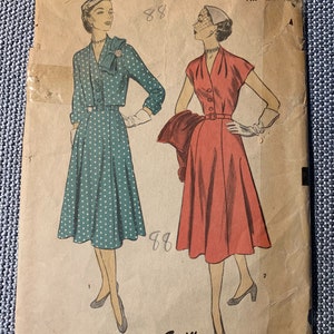 1940s Lovely Sun Dress And Bolero Jacket Pattern Simplicity 2397 Beautiful Design Includes Applique Transfer Bust 34 Simple To Make Vintage Sewing Pattern